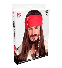 Αποκριάτική περούκα με μουστάκι & μπαντάνα Caribbean Pirate από την εταιρία Epilegin.