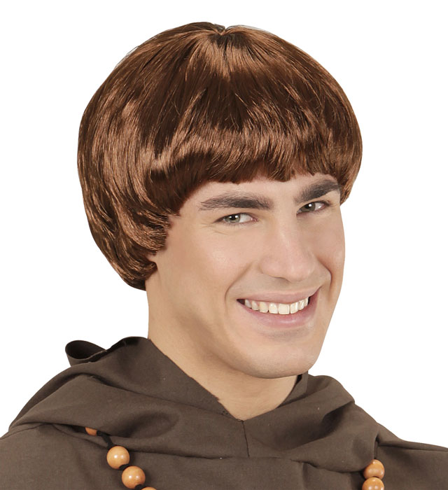 Αποκριάτικη περούκα αντρική "Καλόγερος" καστανή