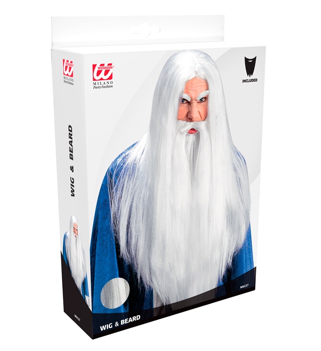Αποκριάτικη περούκα με μούσι "Μάγος" Λευκή