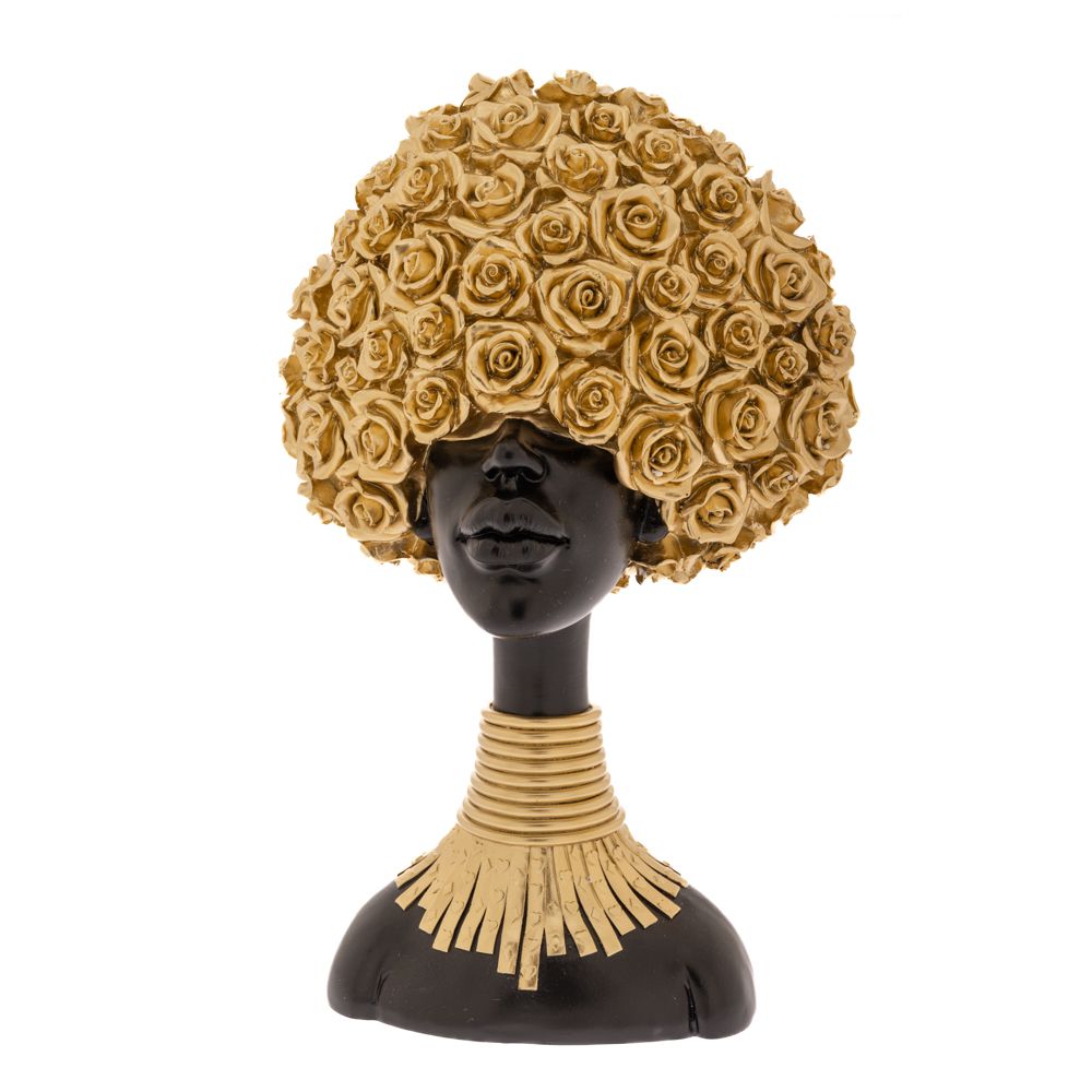 Δι Μαυρη Πολυρεζιν Φιγουρα Αφρικανας Με Χρυσα Λουλουδια Στα Μαλλια Και Χρυσο Κολιε 27Χ15Χ41Εκ
