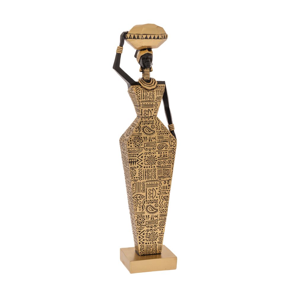 Δι Χρυση Πολυρεζιν Φιγουρα Αφρικανας Με Χρυσο Αναγλυφο Φορεμα Και Σταμνα Στο Κεφαλι 8Χ6Χ32Εκ