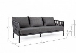 Καναπές 3 θέσεων Αλουμίνιο & Rope Jacinta Charcoal 231x83x87cm από την εταιρία Epilegin.