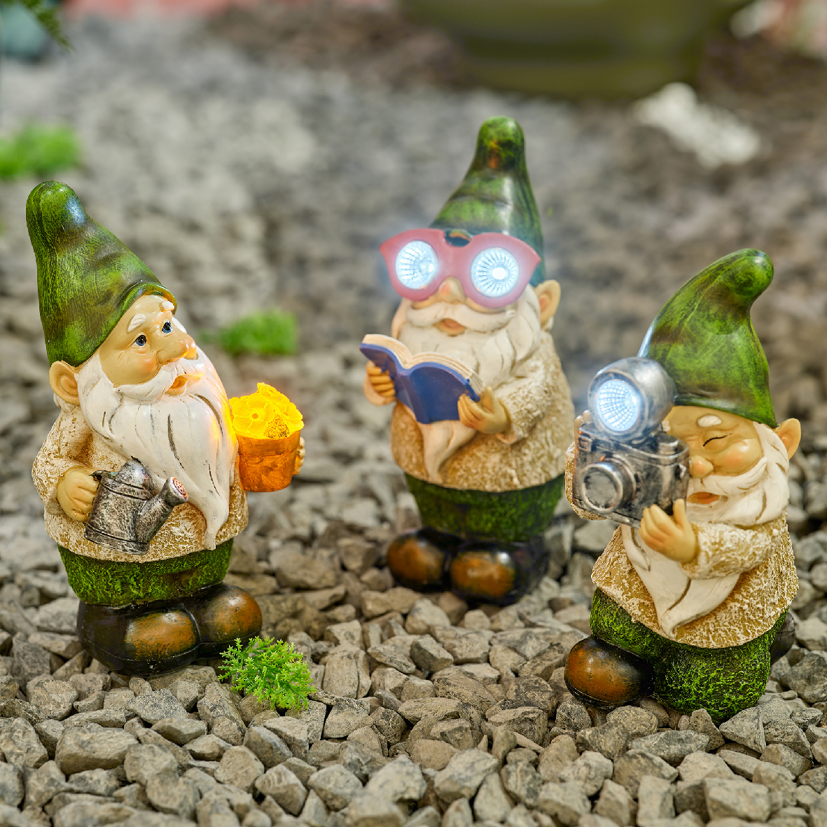Φωτιστικό Polyresin Ηλιακό "Dwarf Book" 12x14x24cm