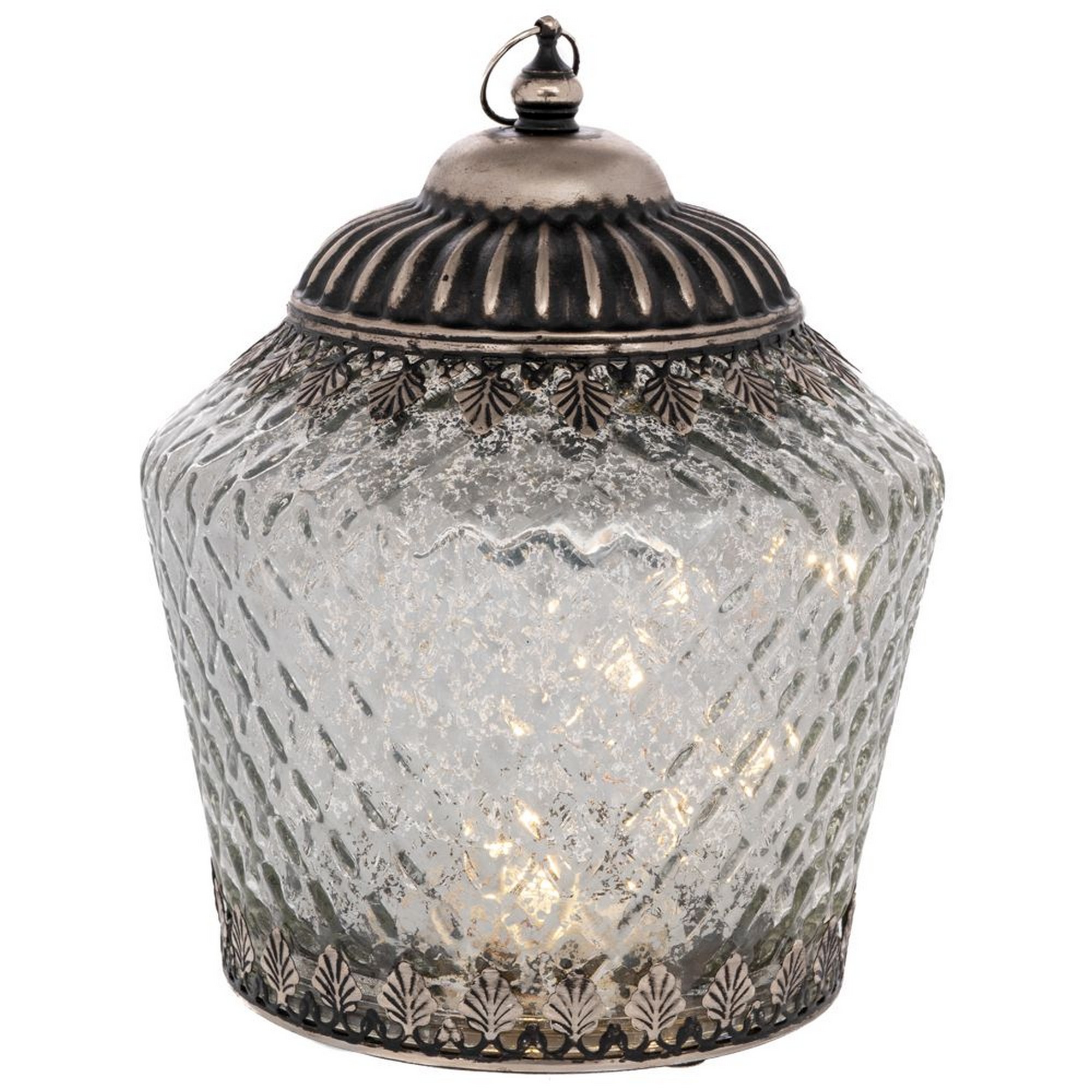 Γυάλινο φανάρι Led μπαταρίας με καπάκι "Μαυρό" 15x15x19cm