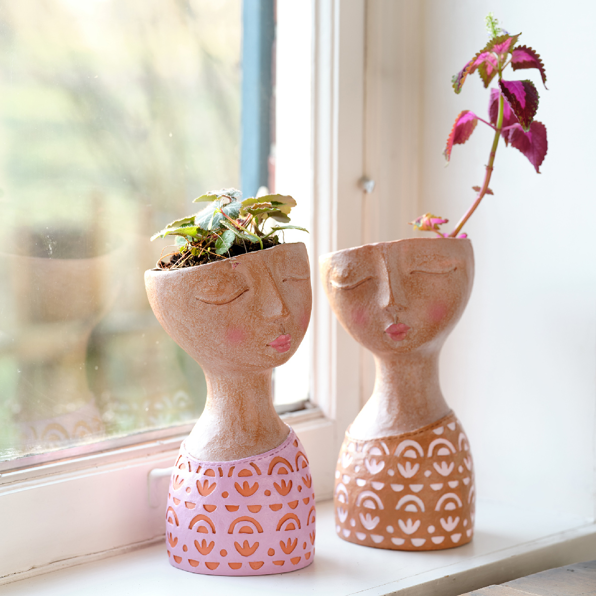 Κασπώ Polyresin "Lady Face" Terracotta 14.8x15.6x28cm