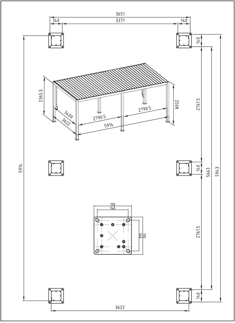 - Main poles 111x111mm, horizontal poles 140x75mm.