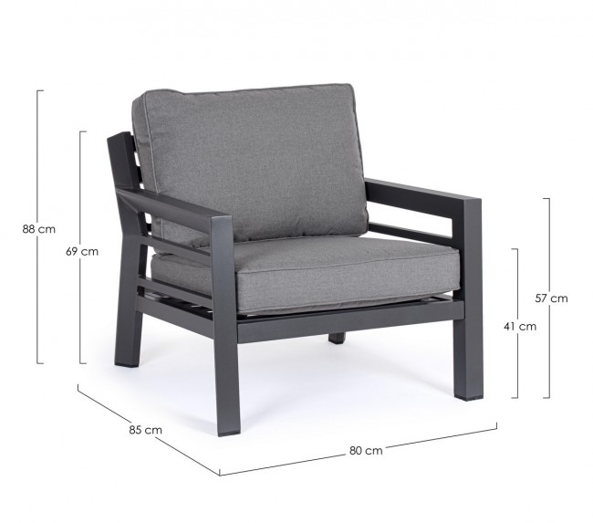 Πολυθρόνα Αλουμινιου "Hendrix " Ανθρακί 80x85x88/41/57cm - 69cm