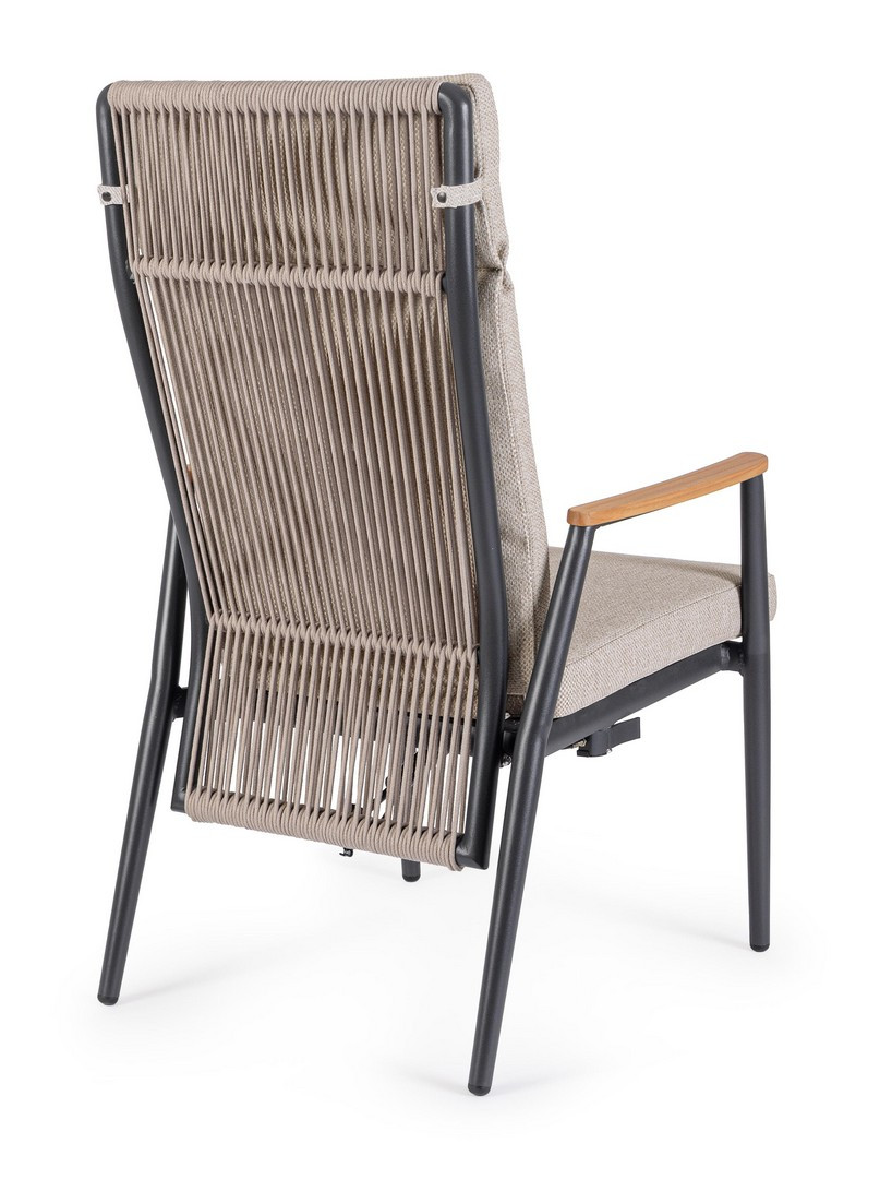 - Πλάτη(με πλεγμένο σχοινί olefin(ανθεκτικό ύφασμα)), με ανακλιση και κάθισμα σε textilene(συνθετικό δίχτυ) 1x1.