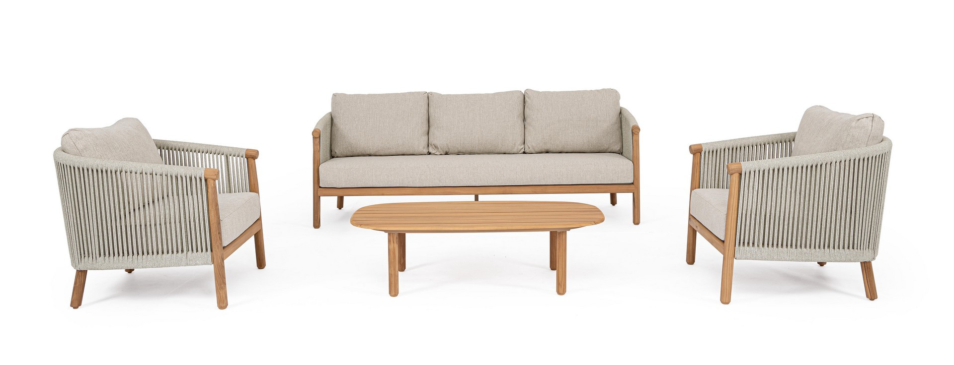 Σαλόνι Αλουμινίου Rope 4pcs "Apollus" Teak & Light Grey