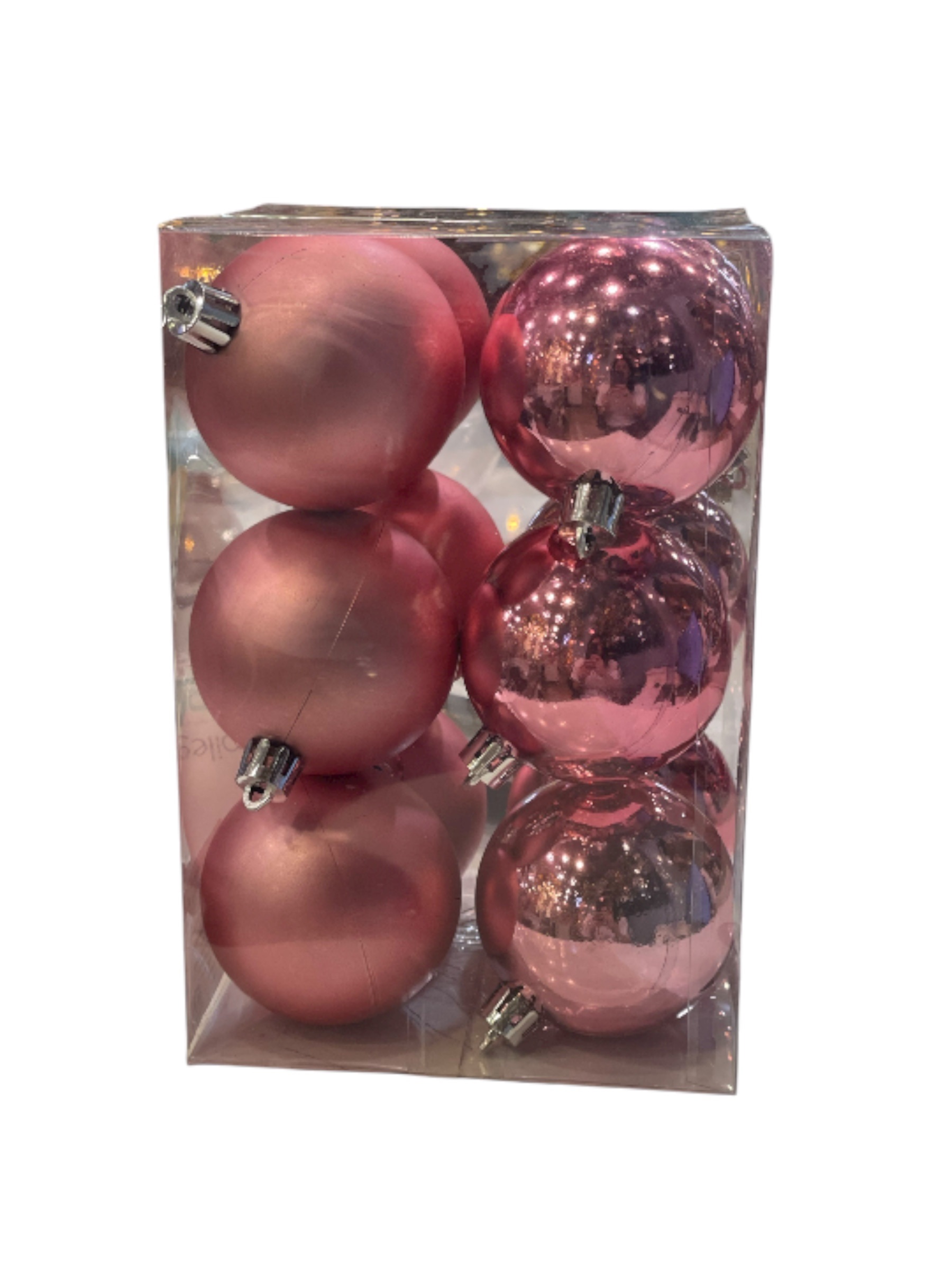 Σετ 12τμχ χριστουγεννιάτικη πλαστική μπάλα ροζ 6εκ