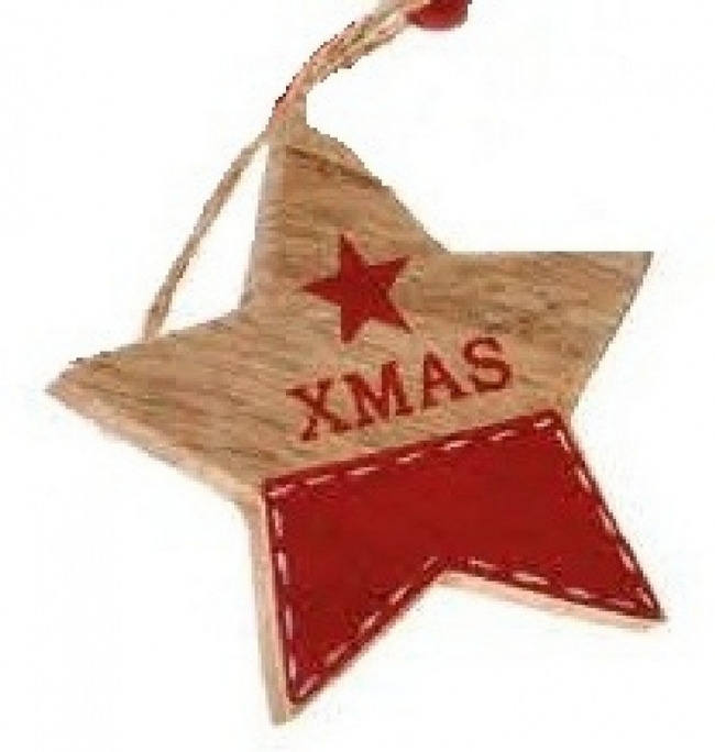 Ξύλινο κρεμαστό αστέρι φυσικό-κόκκινο 9εκ