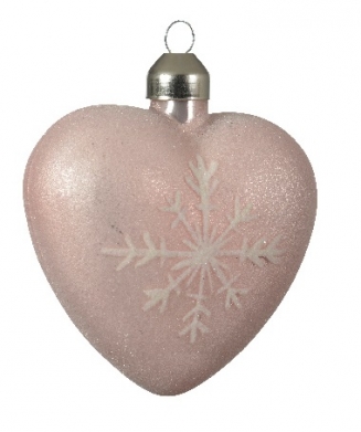 Χριστουγεννιάτικη γυάλινη καρδιά ροζ με νιφάδα άσπρη