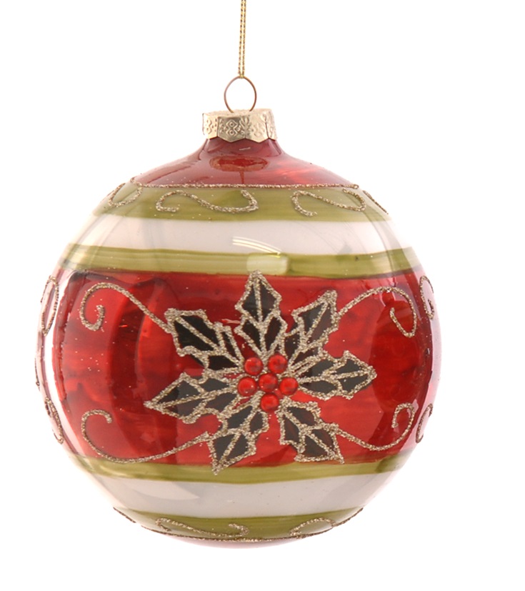 Χριστουγεννιάτικη γυάλινη μπάλα με λουλούδι κόκκινη πράσινη 10εκ