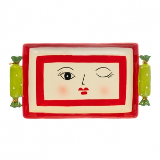 Χριστουγεννιάτικη κεραμική πιατέλα "Καραμέλα" κόκκινη 27x14εκ