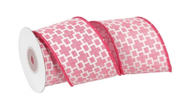 Χριστουγεννιάτικη κορδέλα ρόζ λευκή ρόζ 10m.