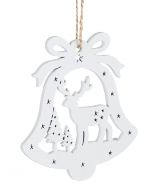 Χριστουγεννιάτικη ξύλινη κρεμαστή καμπάνα λευκή