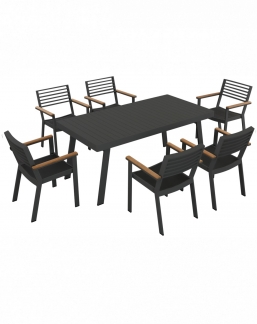 Τραπεζαρία Αλουμινίου & Teak Higold 7pcs York Charcoal από την εταιρία Epilegin.